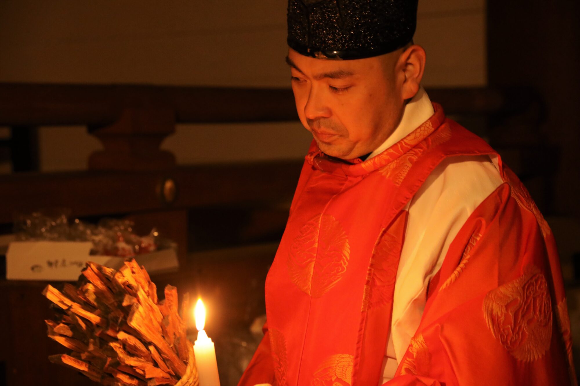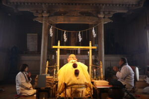 此処に修復された上宮の姿を一部公開いたします